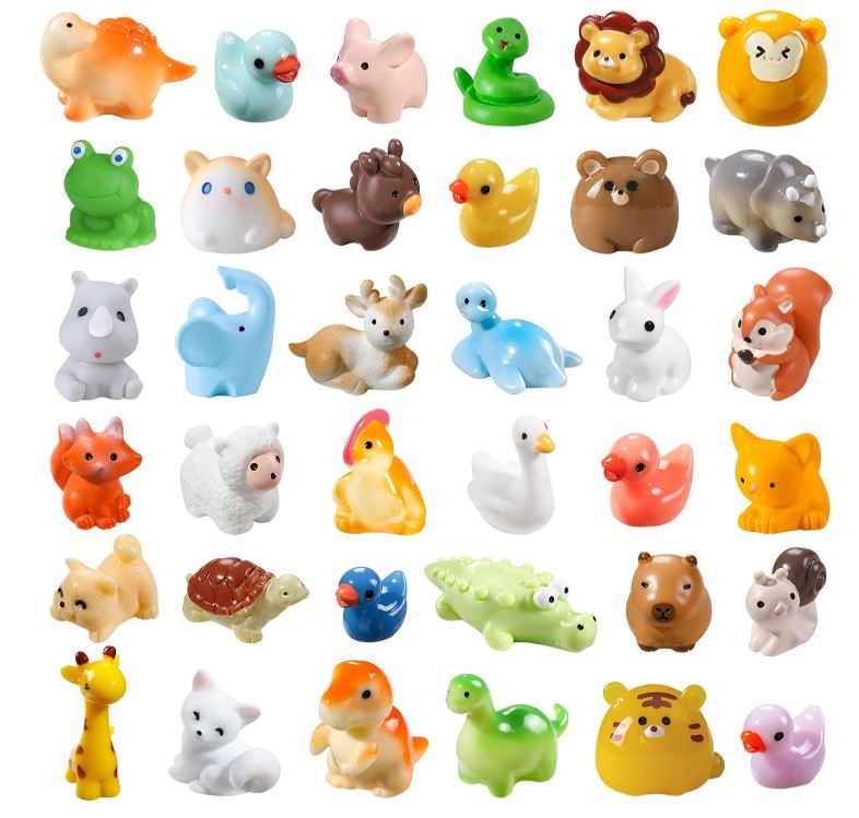 Place a few small, simple objects on the table—figures, animals, or familiar shapes. These can be used.